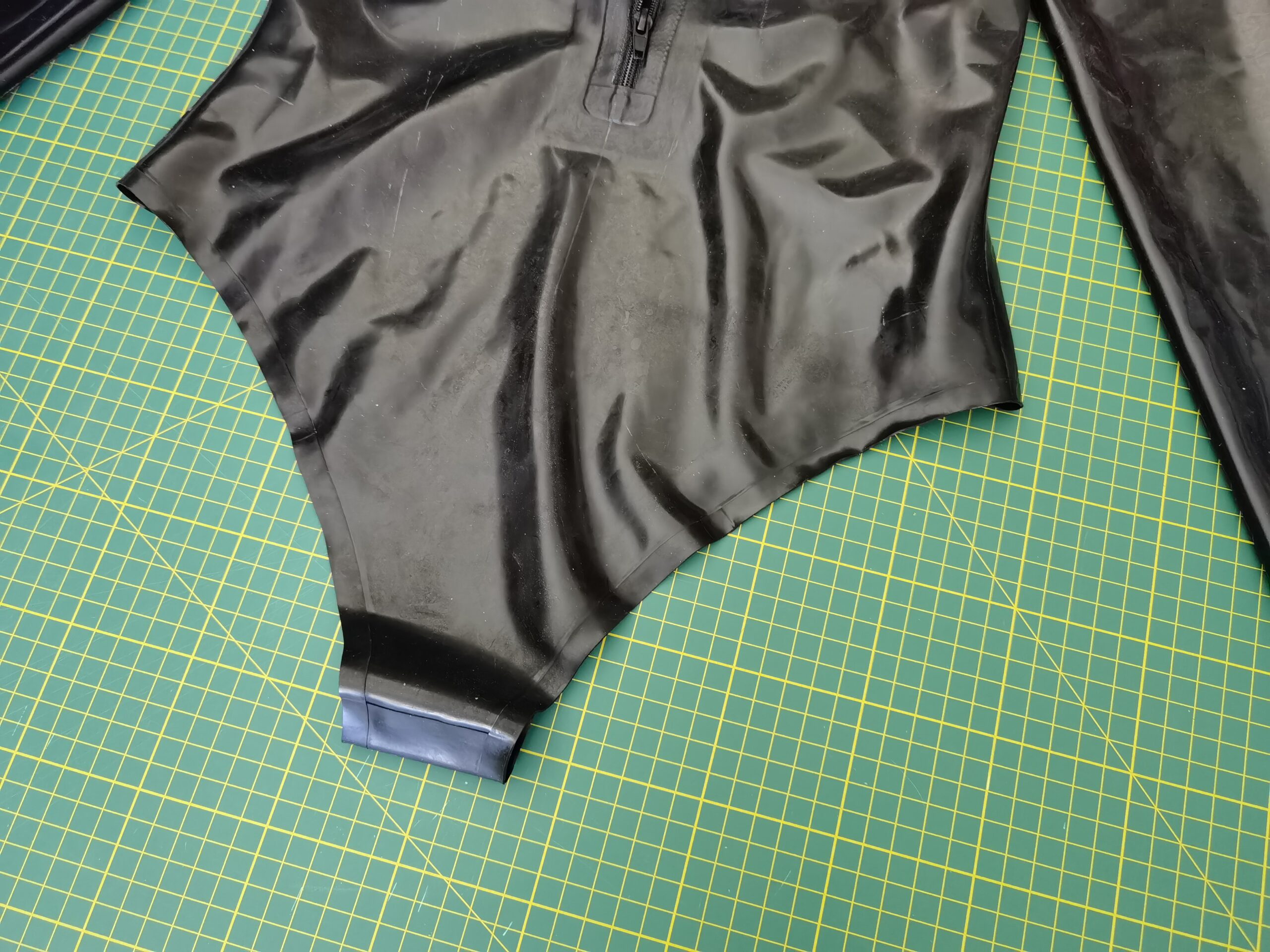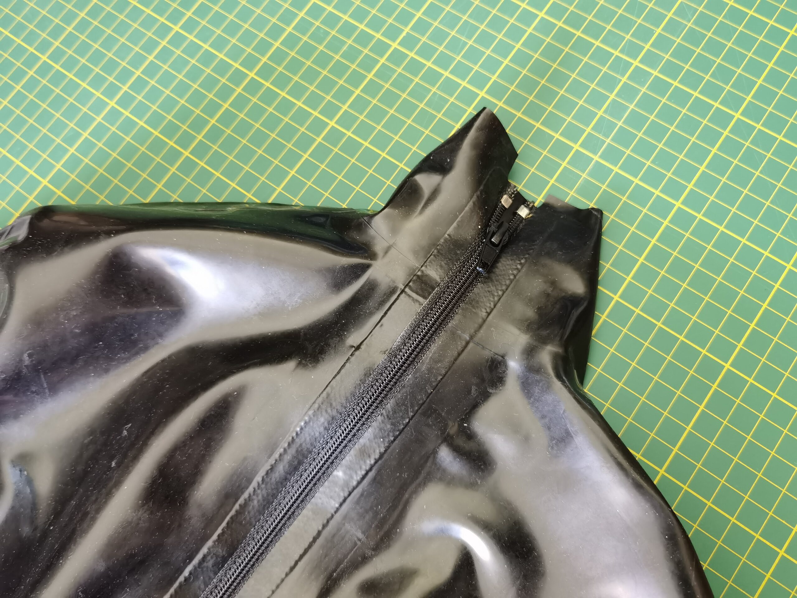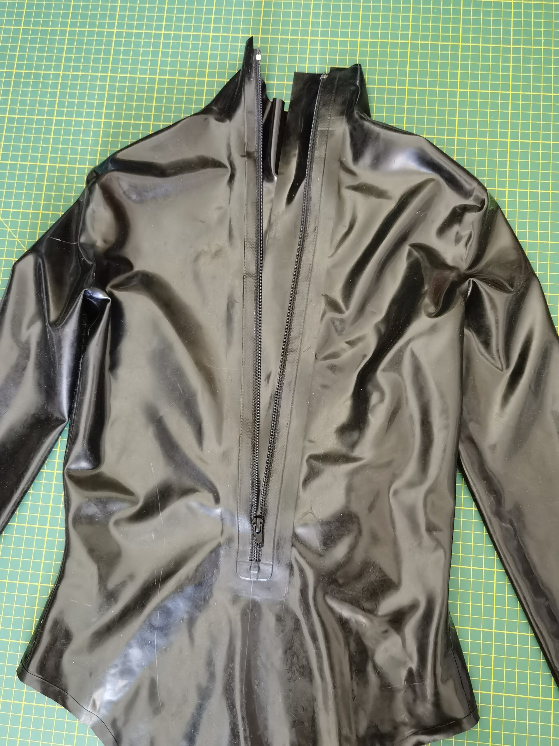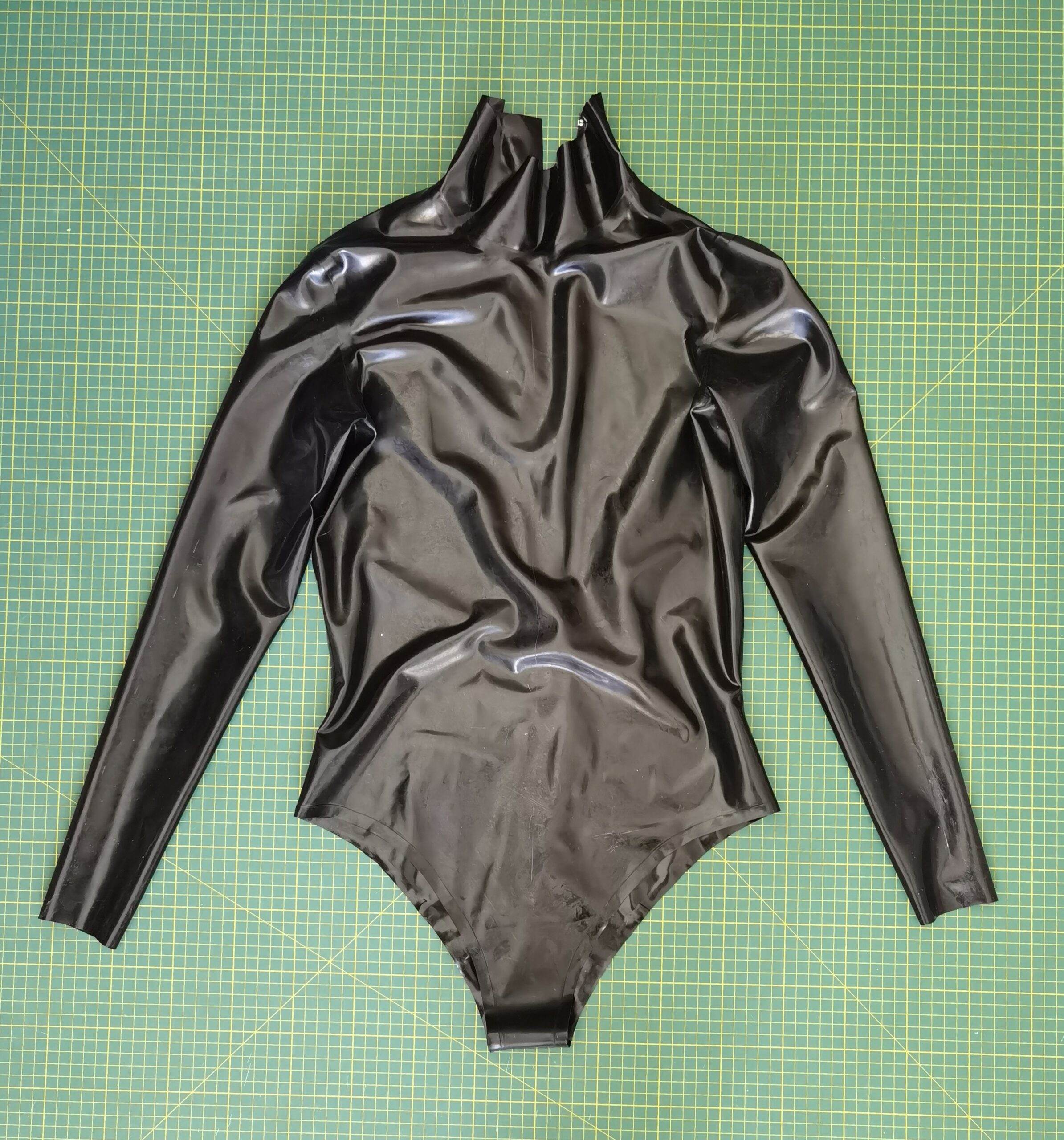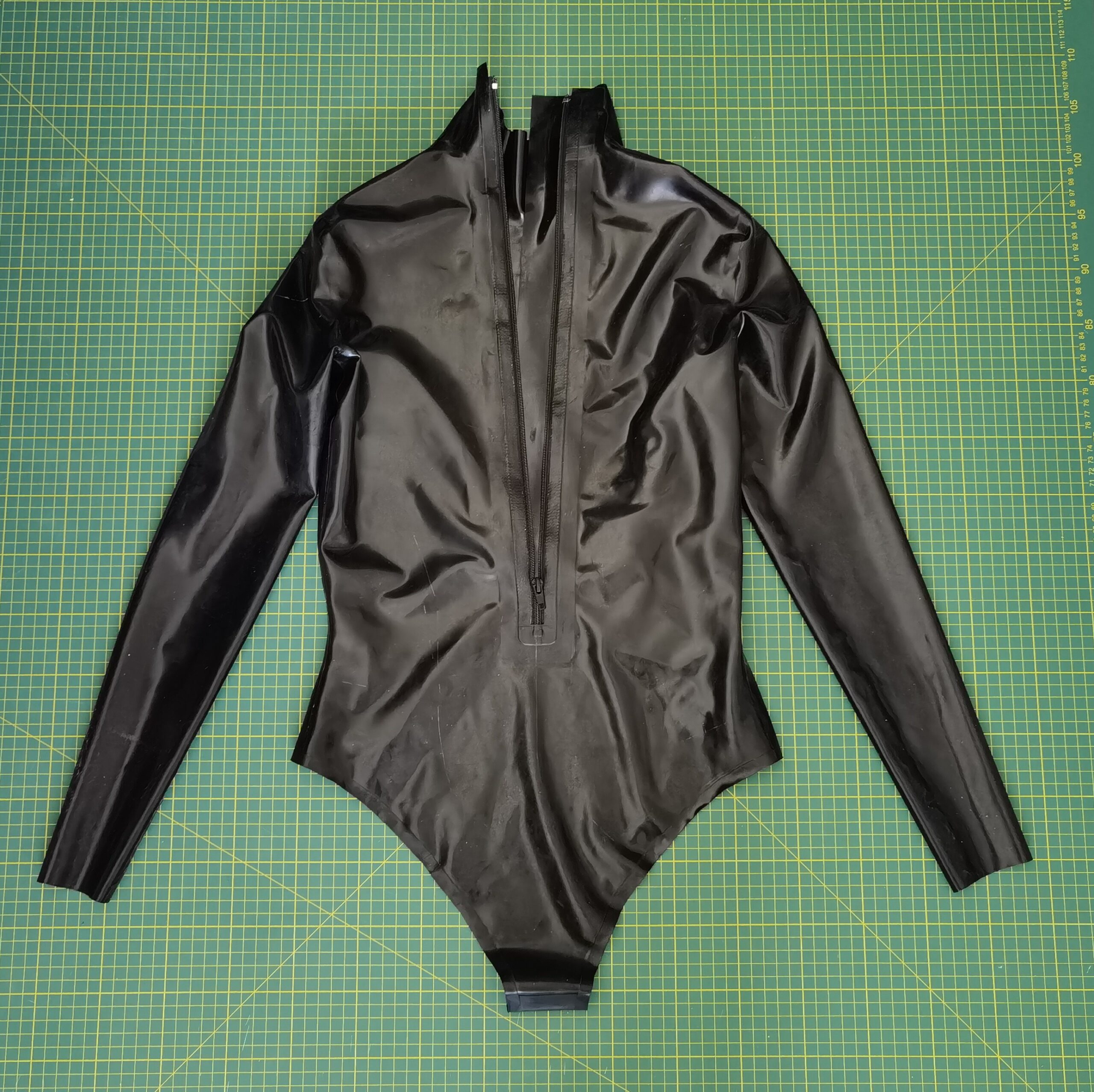 Latex bodysuit with long sleeves and zip. Handmade with 0.4mm natural latex.