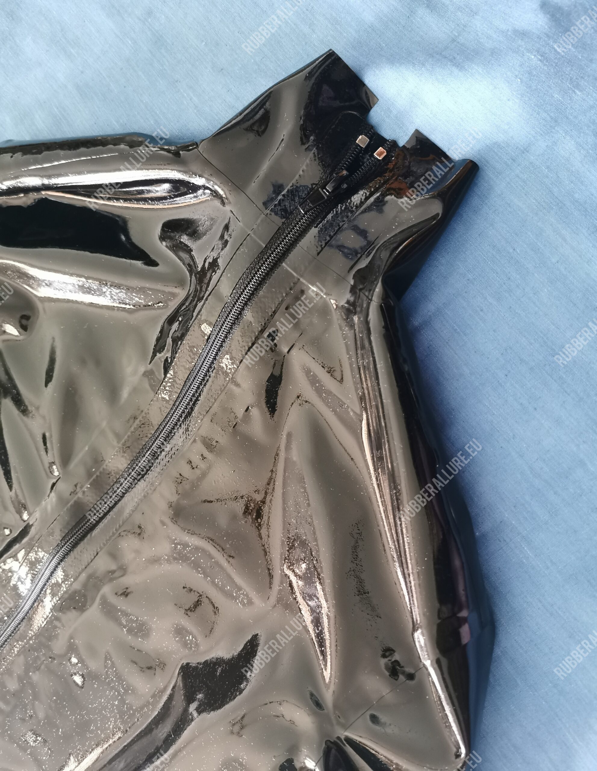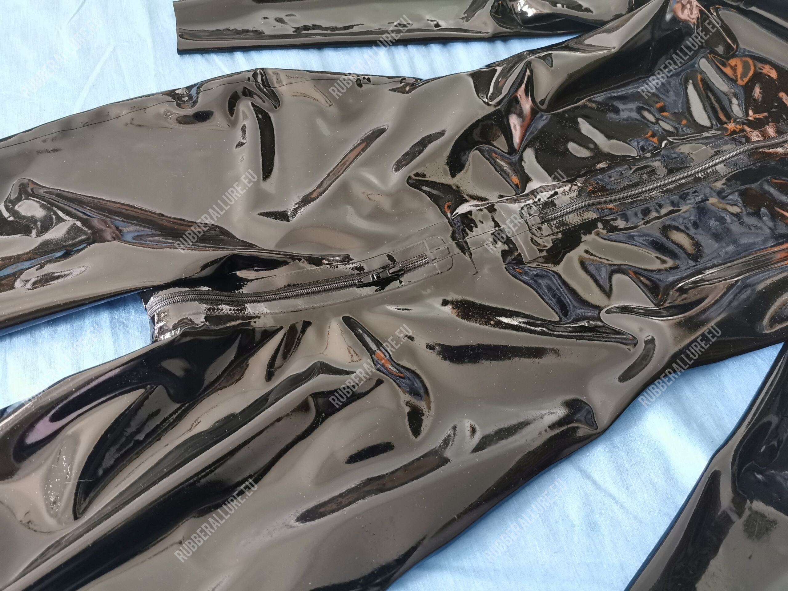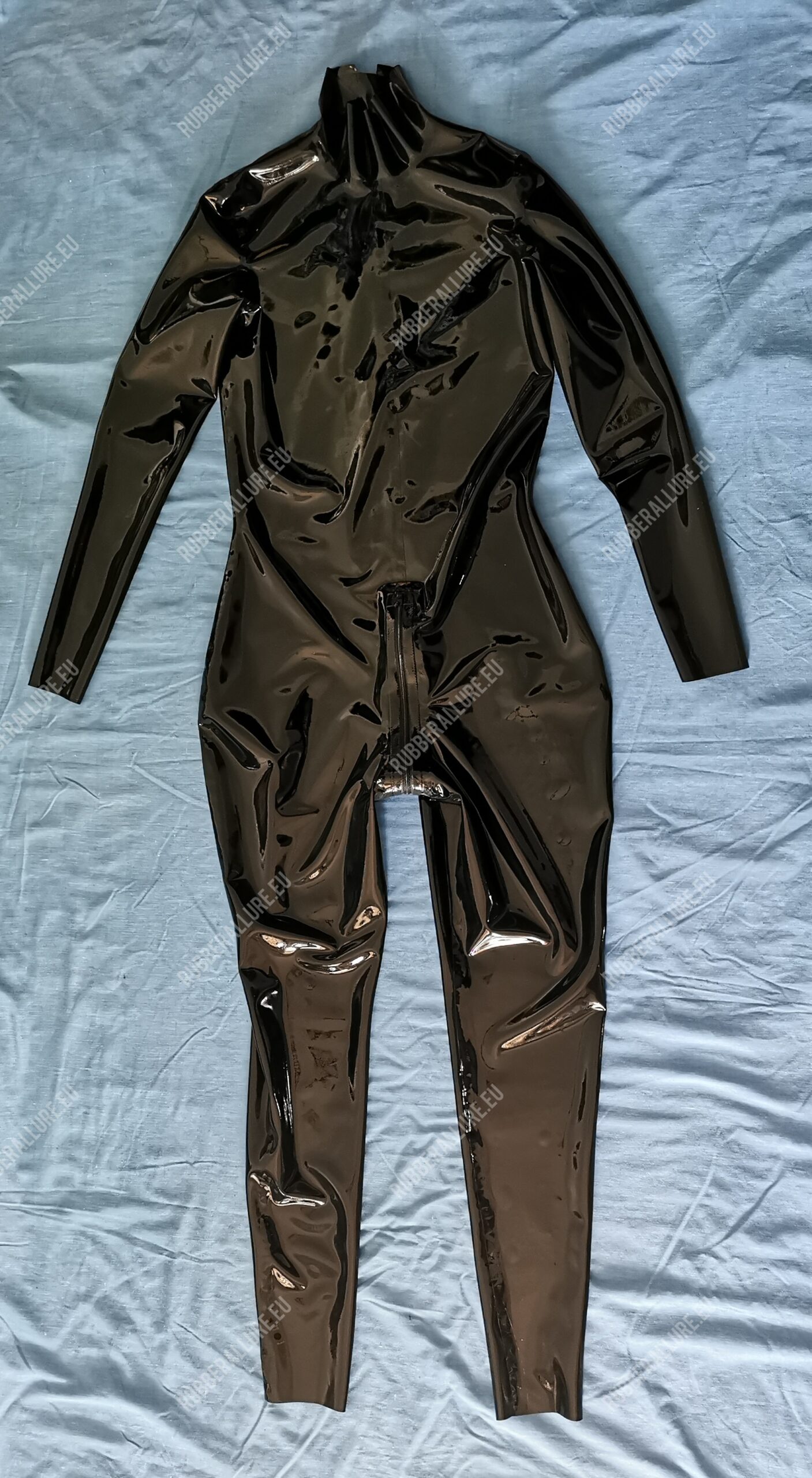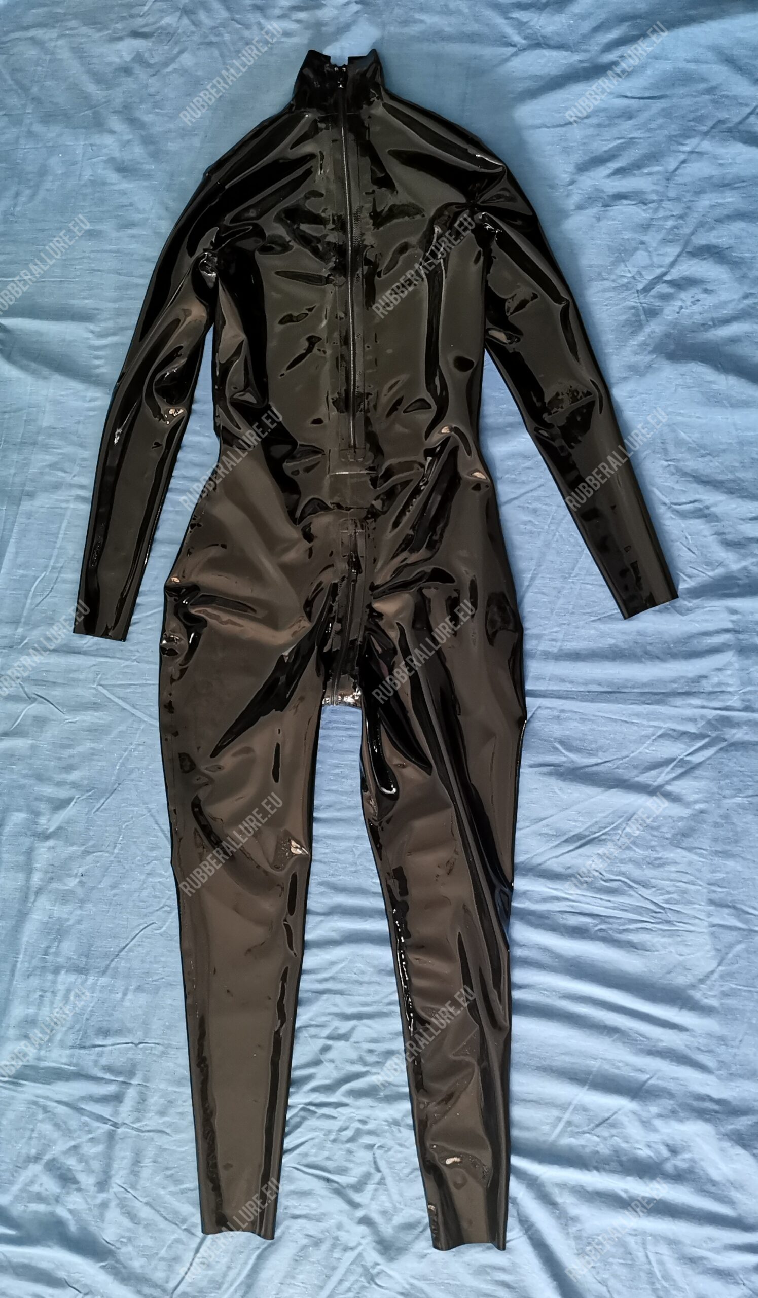 Basic latex catsuit for women, available in all standard sizes. This high-quality latex catsuit is available with four different zipper styles, including back or front zip, and continuous front-crotch or back-crotch zip. Back/front zip include a separate crotch zip, all with zipper protections/flaps.